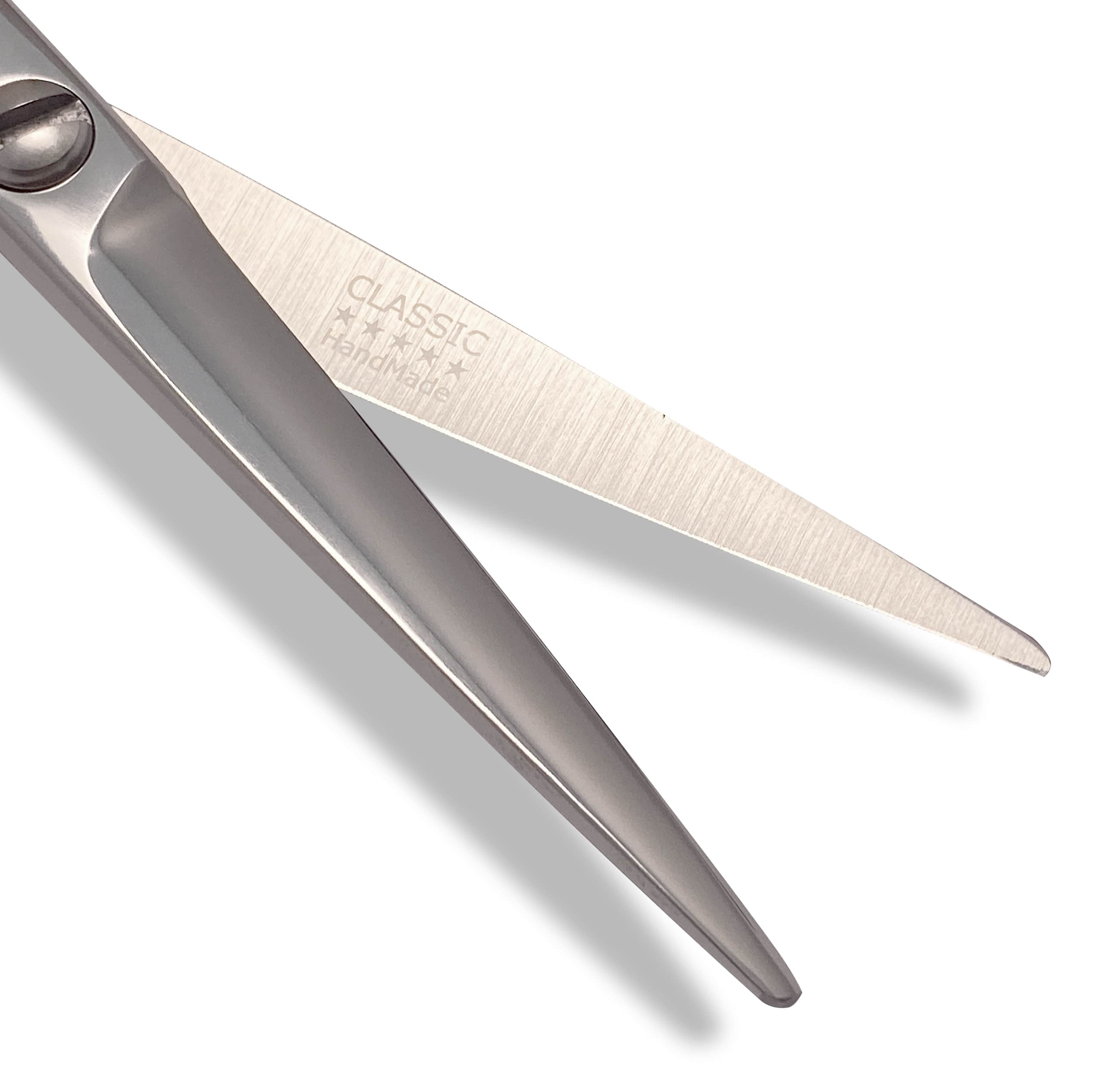 The slender symmetrical handles and polished finish really give this scissor an extremely light feel.