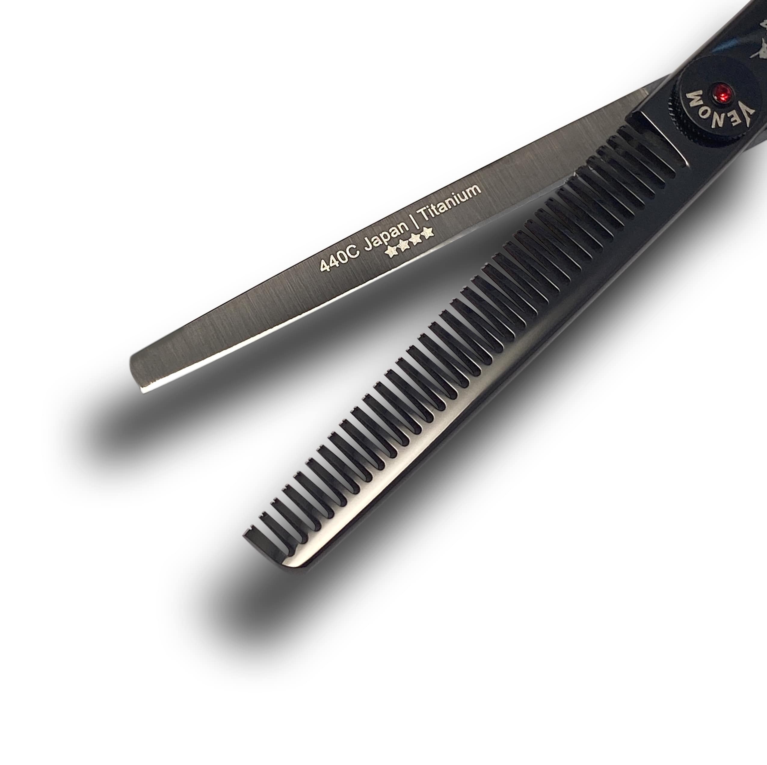 Le diluant Ninja Venom est un bel extérieur noir forgé à partir d'acier japonais 440C de qualité supérieure et recouvert d'une finition en titane accrocheuse. Ce diluant est parfait pour estomper et réduire le volume. Faites l'expérience de performances exceptionnelles et d'une valeur imbattable.