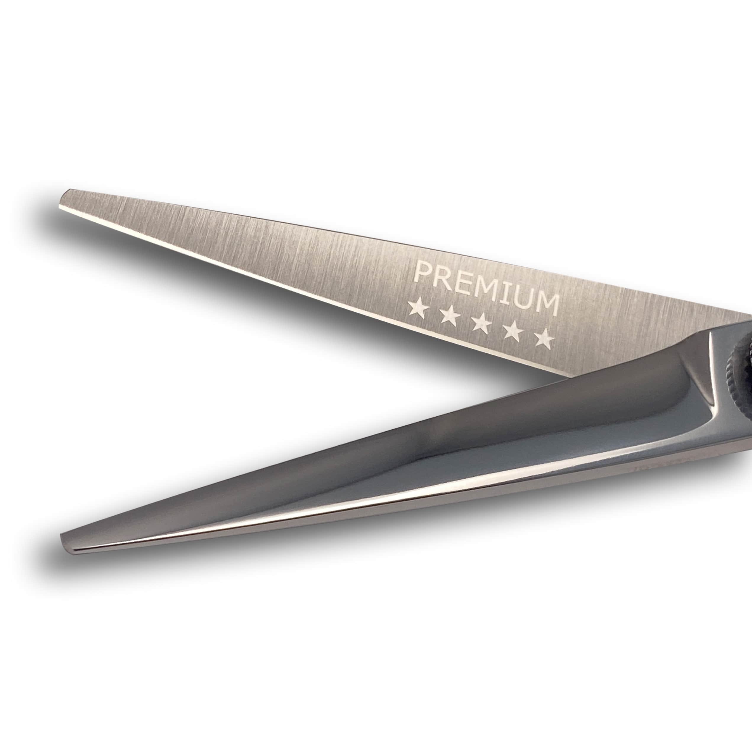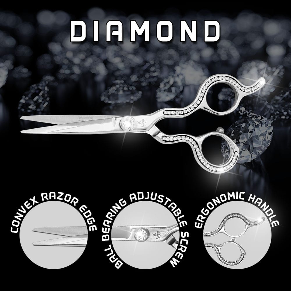 Add some glamour to your salon! These exceptional sharp, ergonomically designed hair styling scissors are made of VG10 Japanese Super Cobalt Steel for ultimate sharpness and durability.
