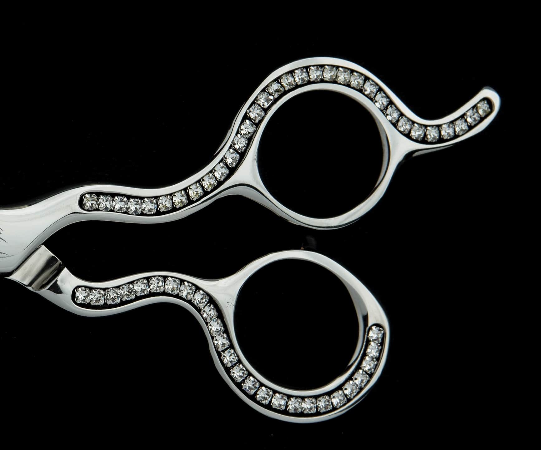 DIAMOND scissor handles are studded with dazzling jewels, this paired with its polished finish exudes a subtle touch of luxury.