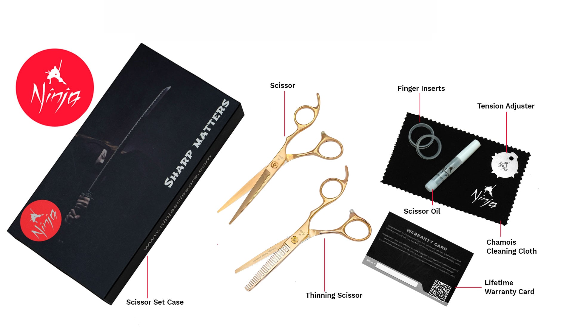 Adicione um pouco de cor ao seu estilo! O acabamento em titânio Gold Dust não só é lindo, mas também ajuda a protegê-lo contra alergia ao níquel. Estas tesouras de modelagem de cabelo excepcionalmente afiadas e ergonomicamente projetadas são forjadas em aço japonês Premium 440C com infusão de cobalto. Se você gosta de um pouco de estilo em suas ferramentas profissionais, então o Ninja Gold Dust é algo para você.